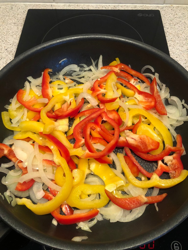 - Rajouter 2 poivrons coupés en fines lamelles