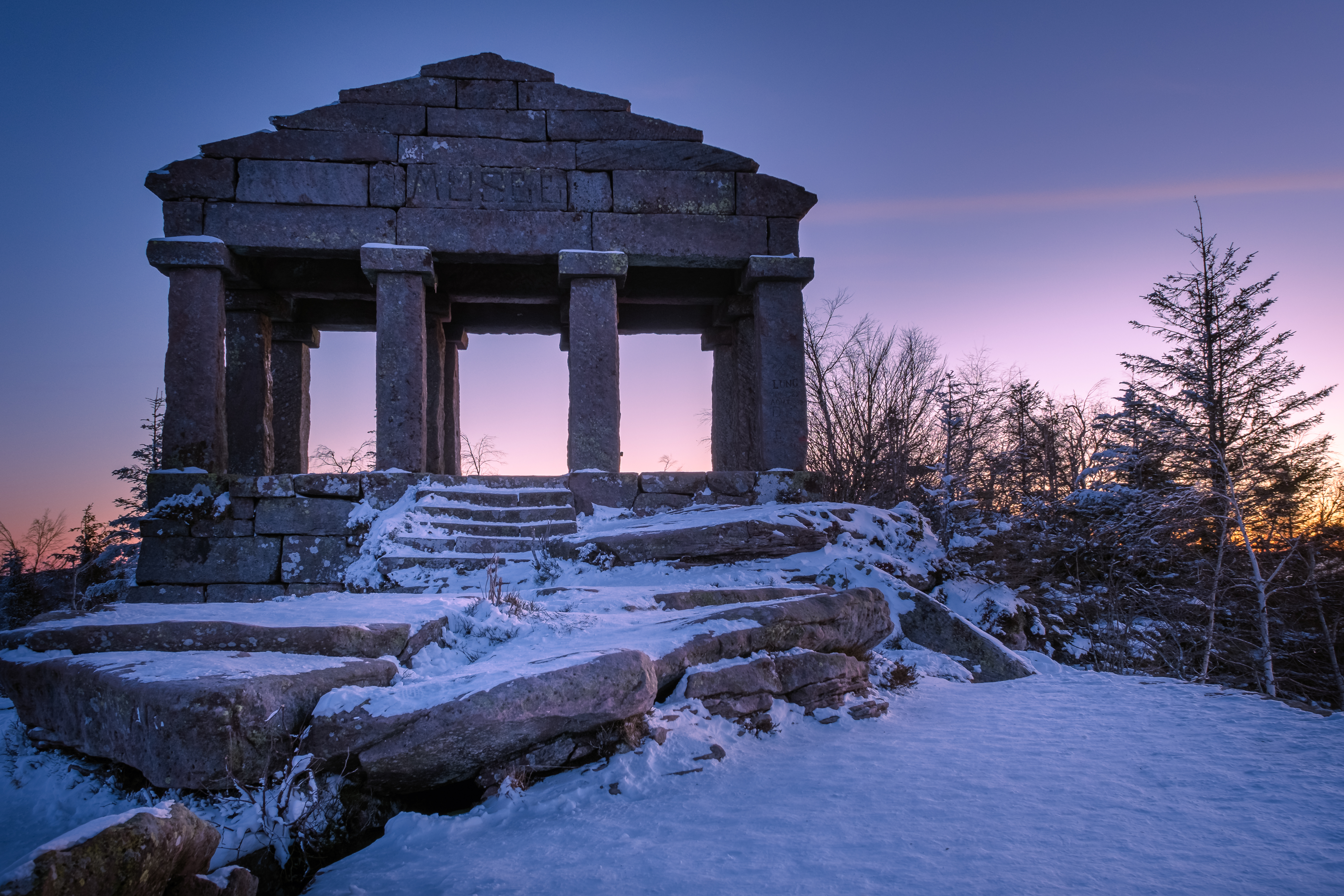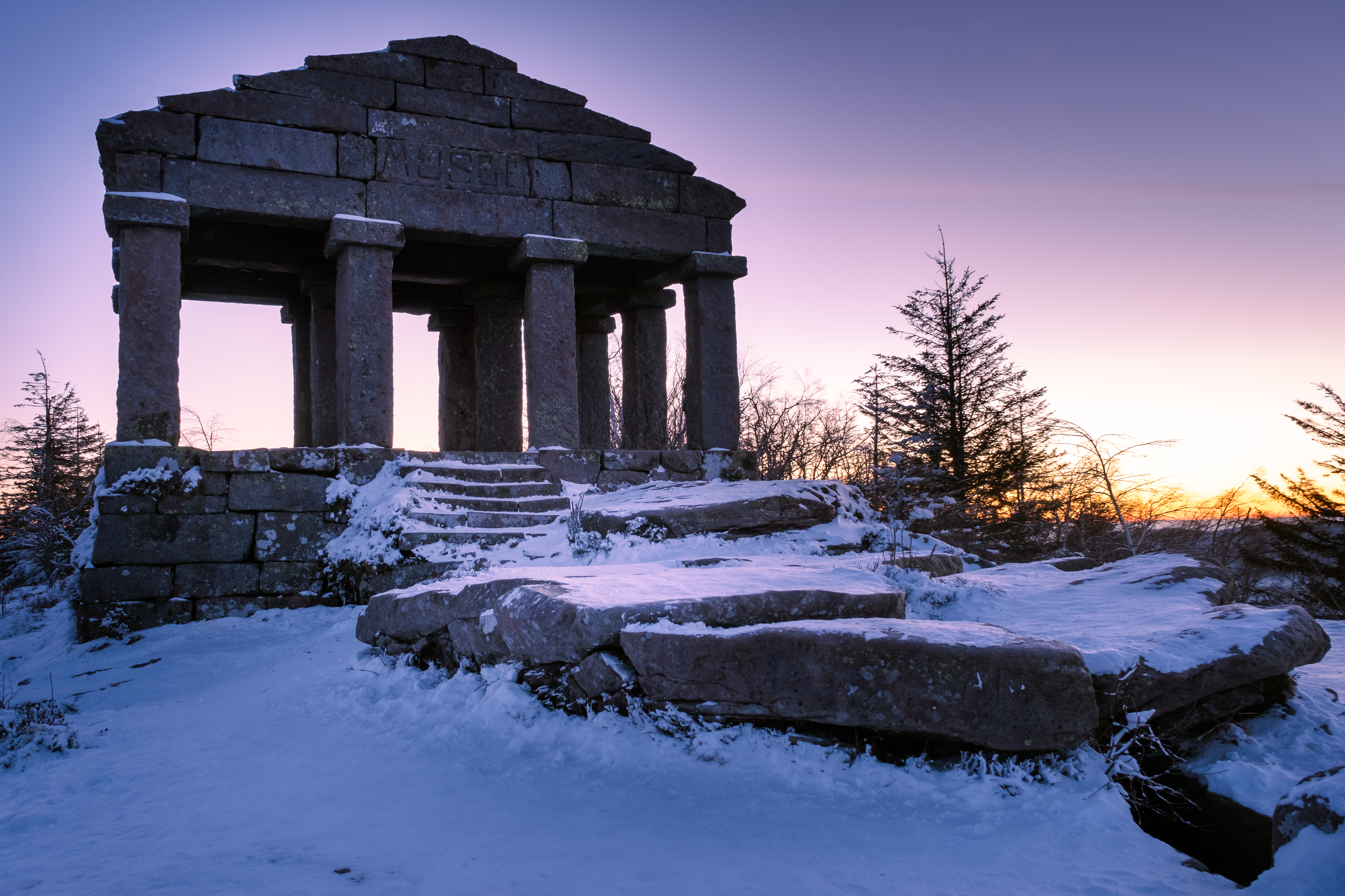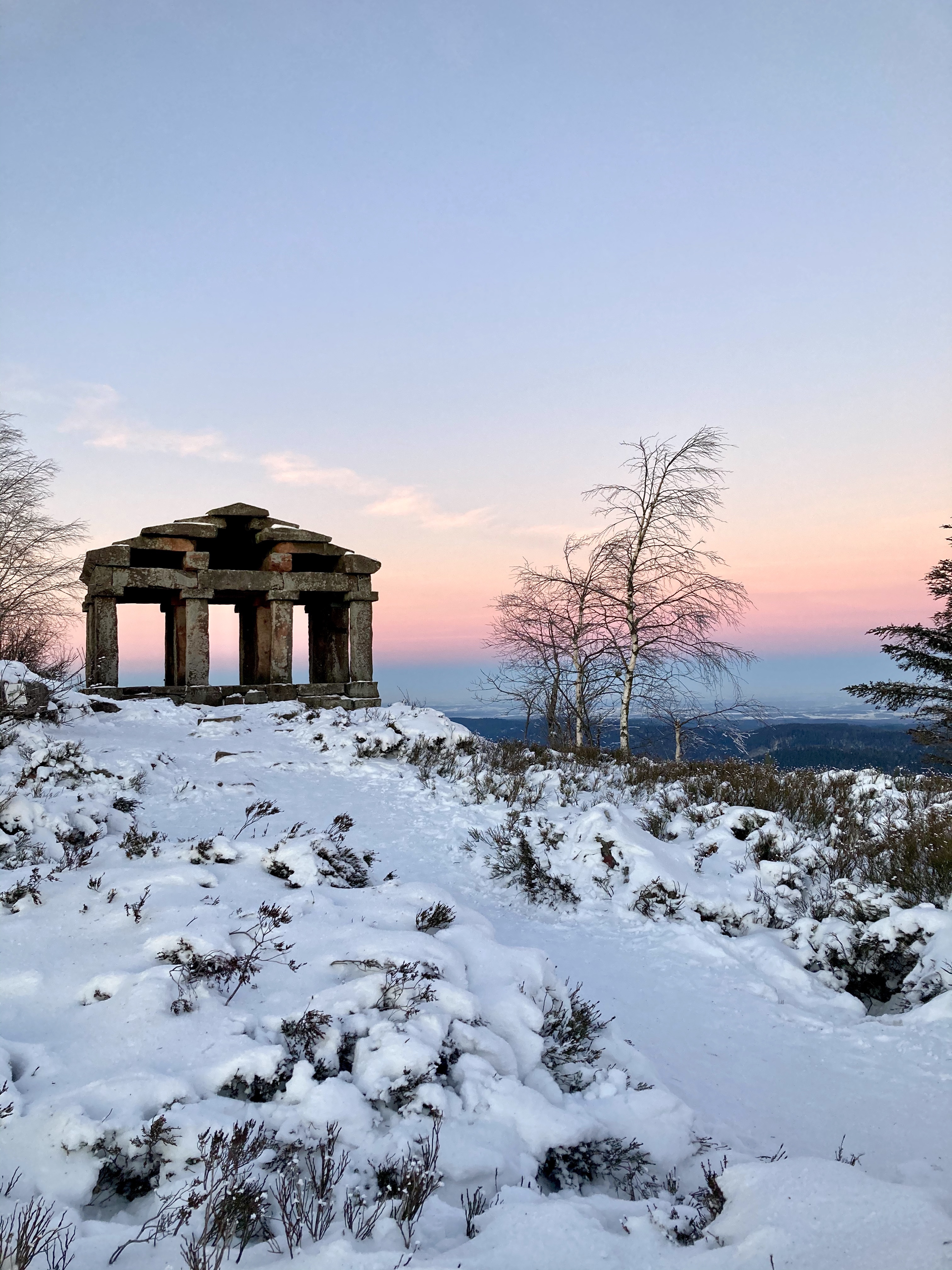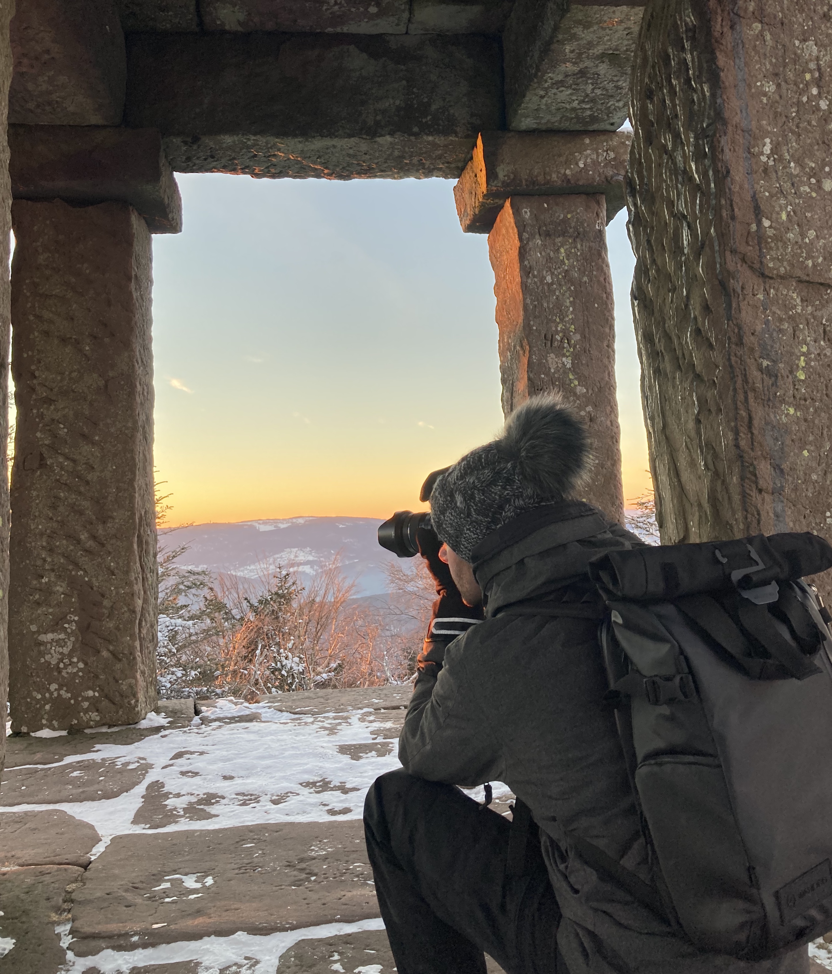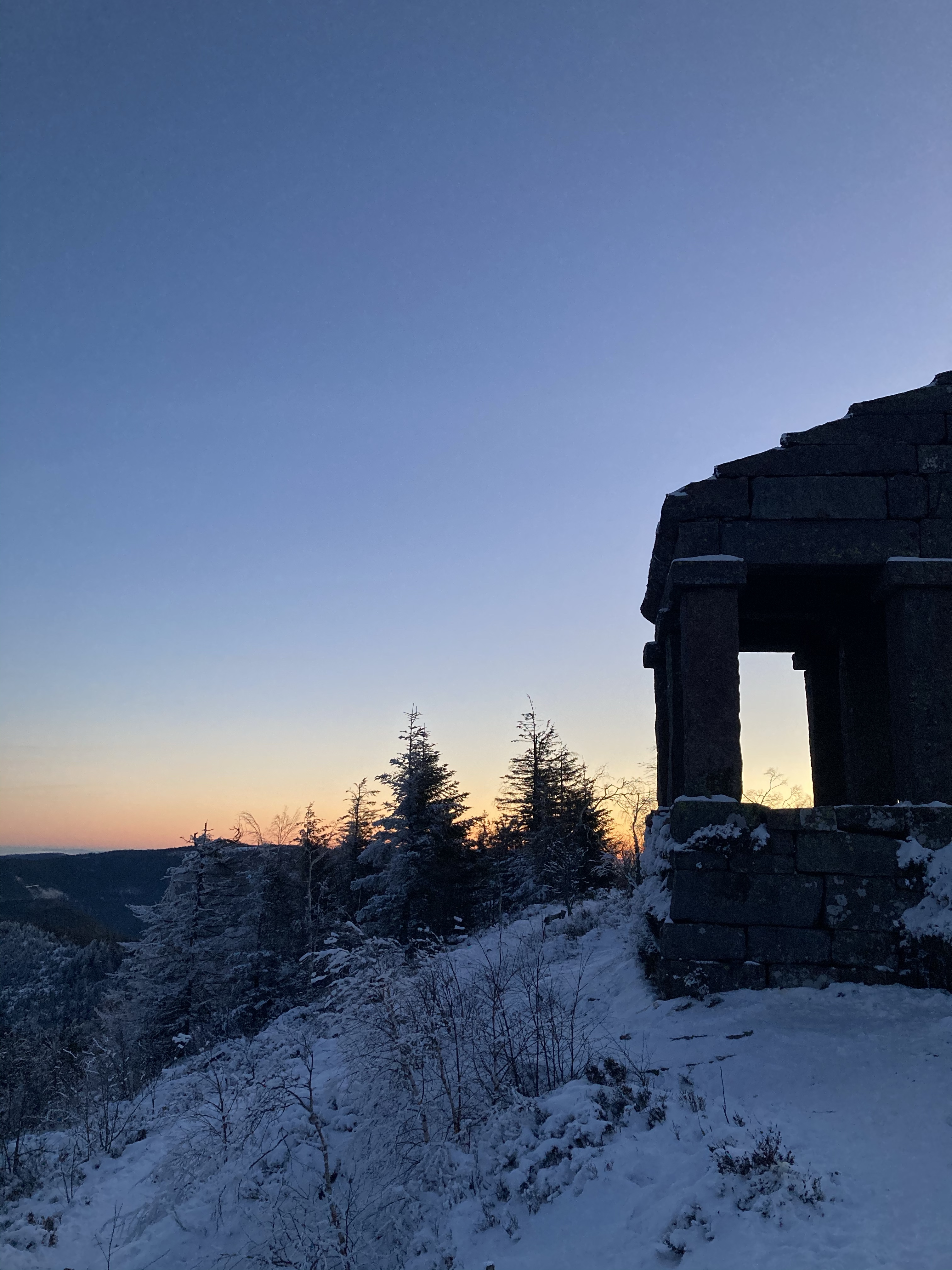 La seule aventure qu’on peut vivre en ce moment, c’est de sortir un peu des sentiers habituels pour faire quelque chose de différent. La différence ce jour-là, c’était de se réveiller à 4h30 du matin pour voir le lever de soleil face au temple du Donon, un de mes endroits chouchou dans les Vosges de par sa vue 360° et ce bel édifice.