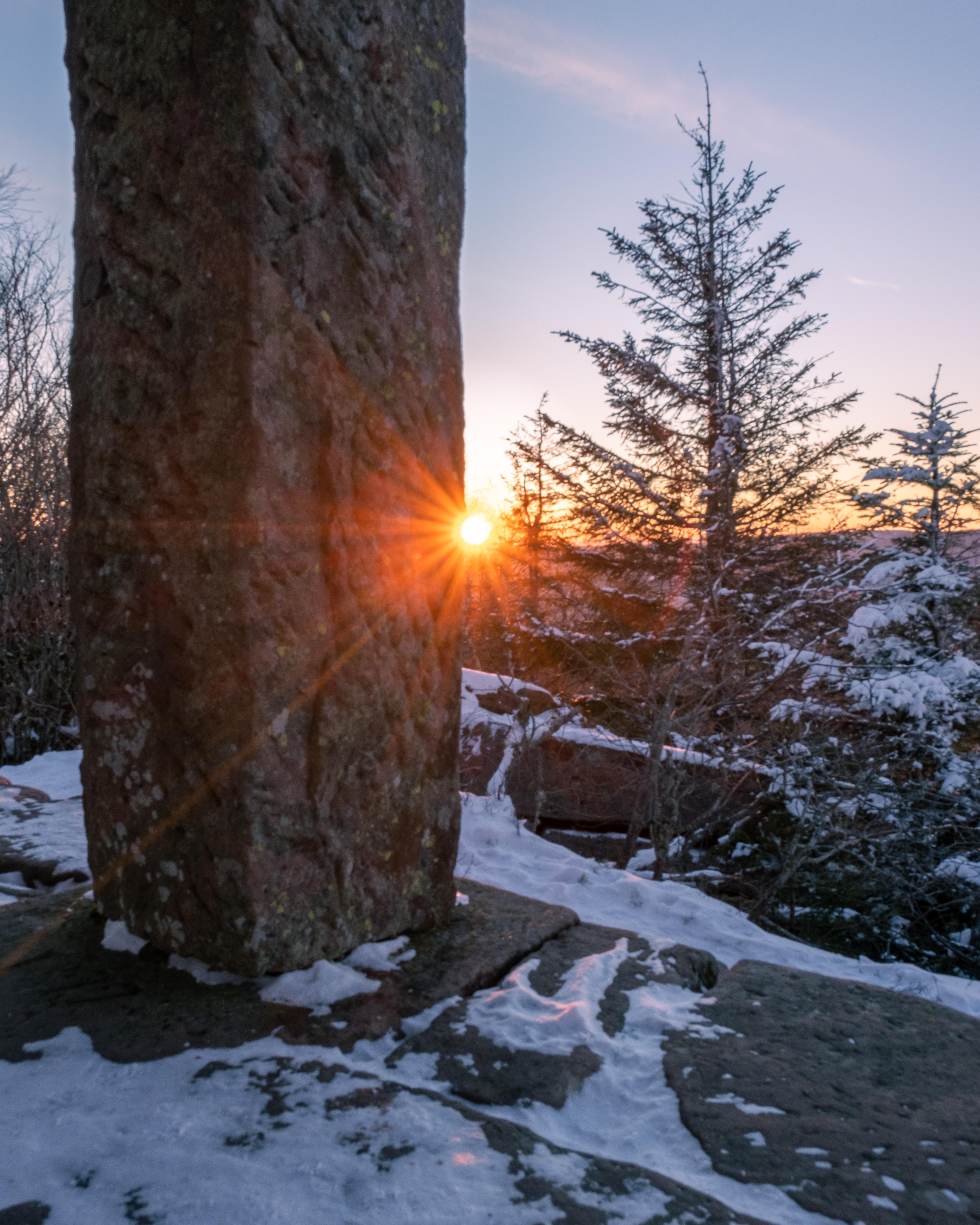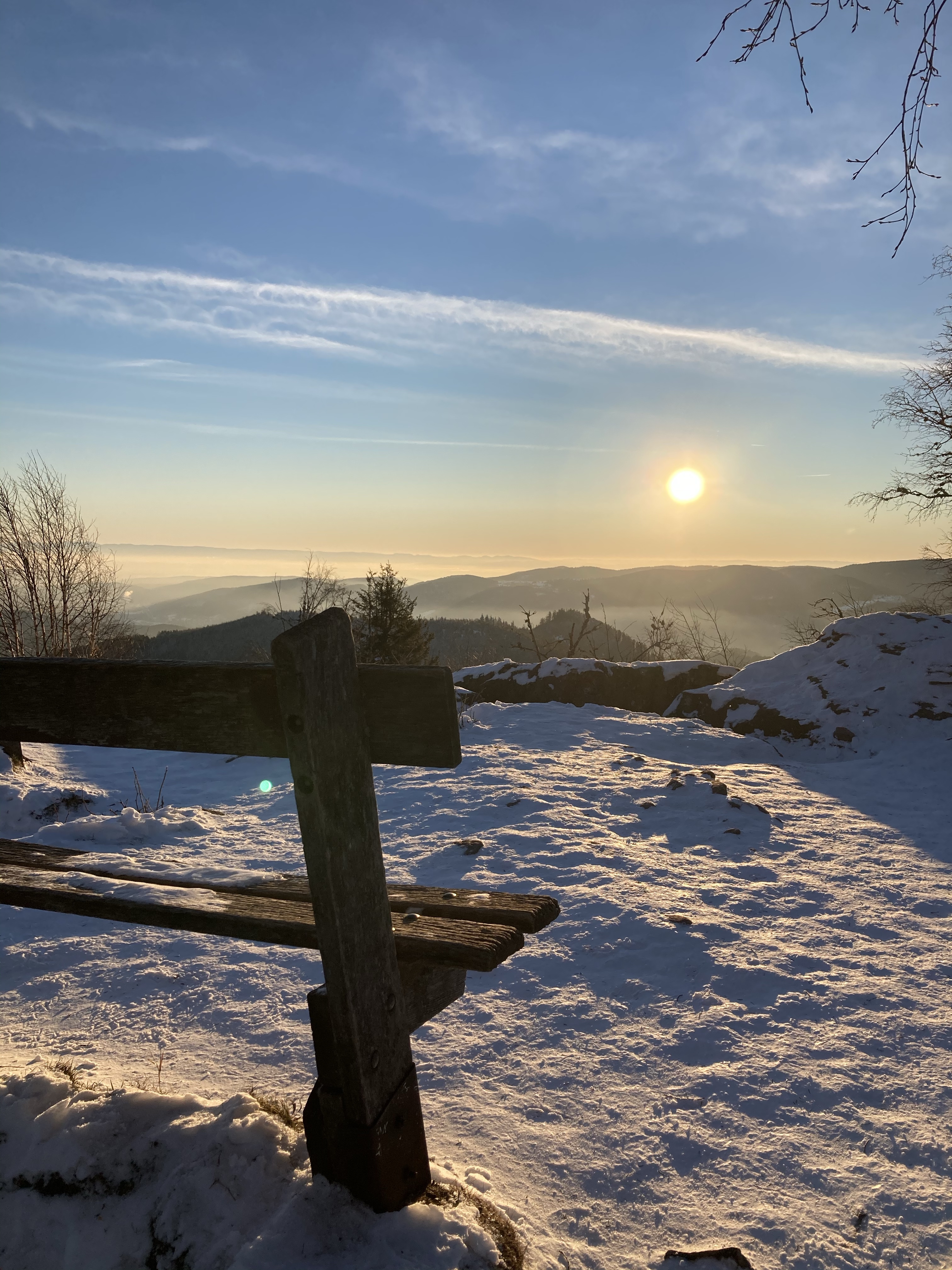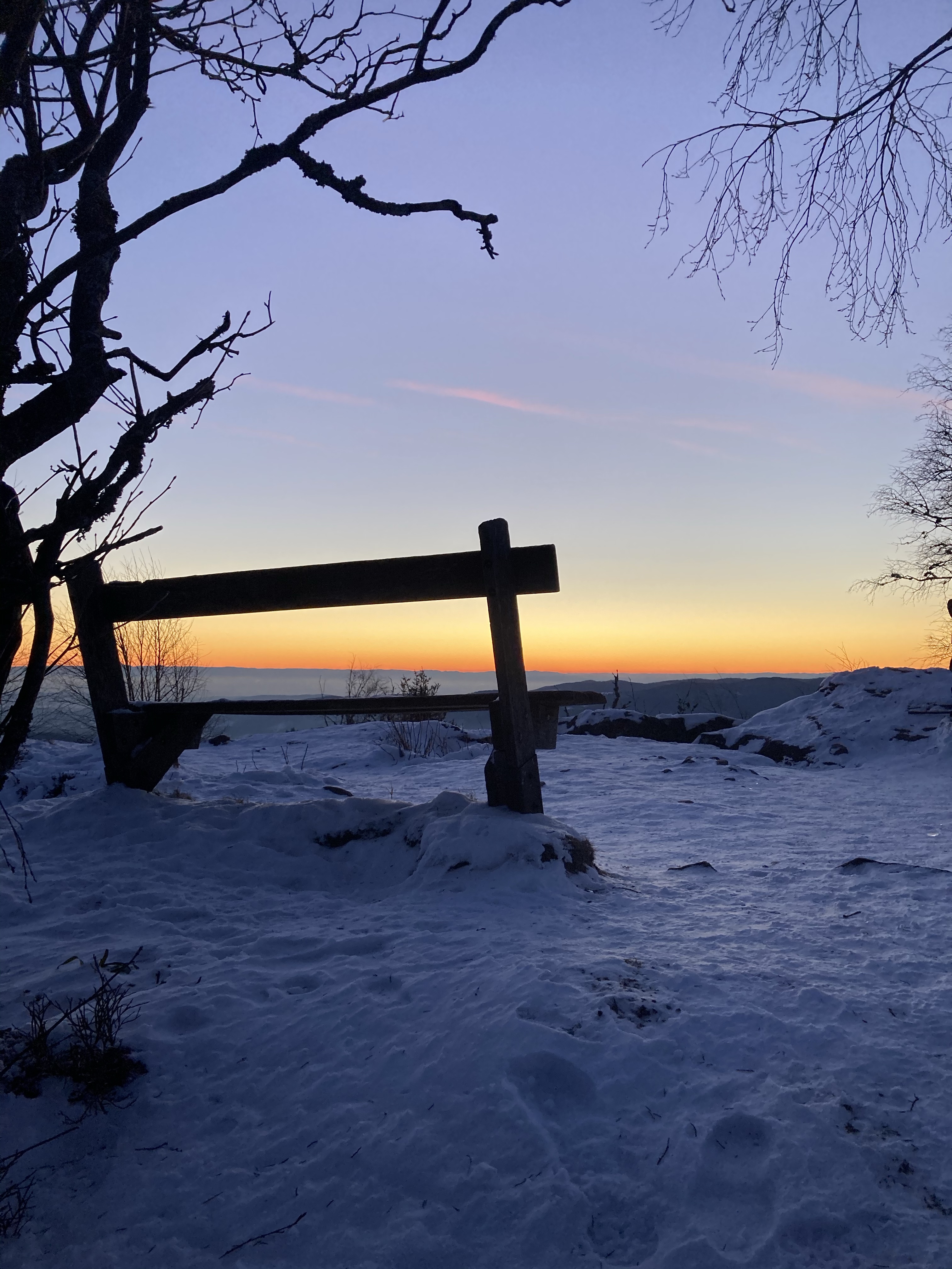 Nous avons repéré plusieurs endroits dans les Vosges mais la plupart sont encore enneigés, la température est encore trop fraîche en altitude et nous n’avons pas acheté de matériel spécial basses températures. (Plus cher et plus volumineux, nous voulions d’abord débuter par faire du bivouac au printemps/été avant de se lancer dans le bivouac plus poussé, à devoir affronter les basses températures)