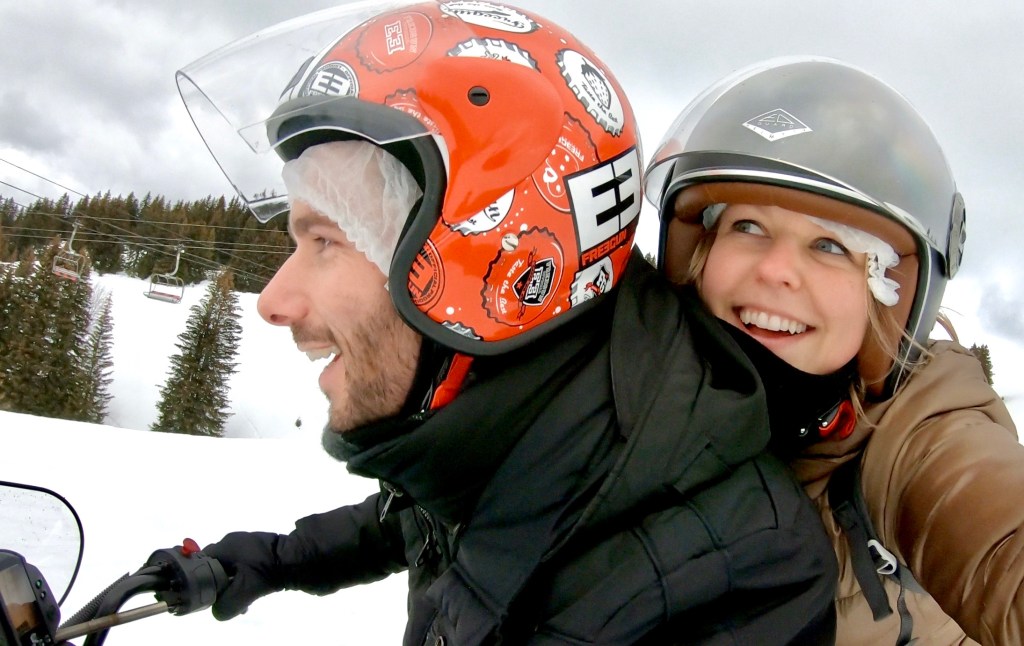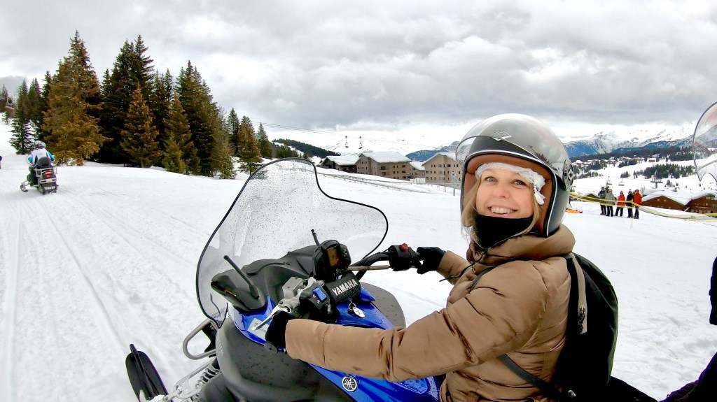 Nous nous sommes à nouveau réveillés sous la pluie mercredi matin. Une sortie motoneige etait prévue l’après-midi et nous avons eu de la chance. Les nuages étaient relativement hauts, il n’a pas plu et nous avons finalement bien pu voir les montagnes. En plus de prendre de la hauteur facilement et sans effort, les sensations qu’apportent la motoneige étaient extra. C’est une activité que je conseille largement ! (Sortie d’une heure avec Les Volatiles Sport 2000 Les Saisies)