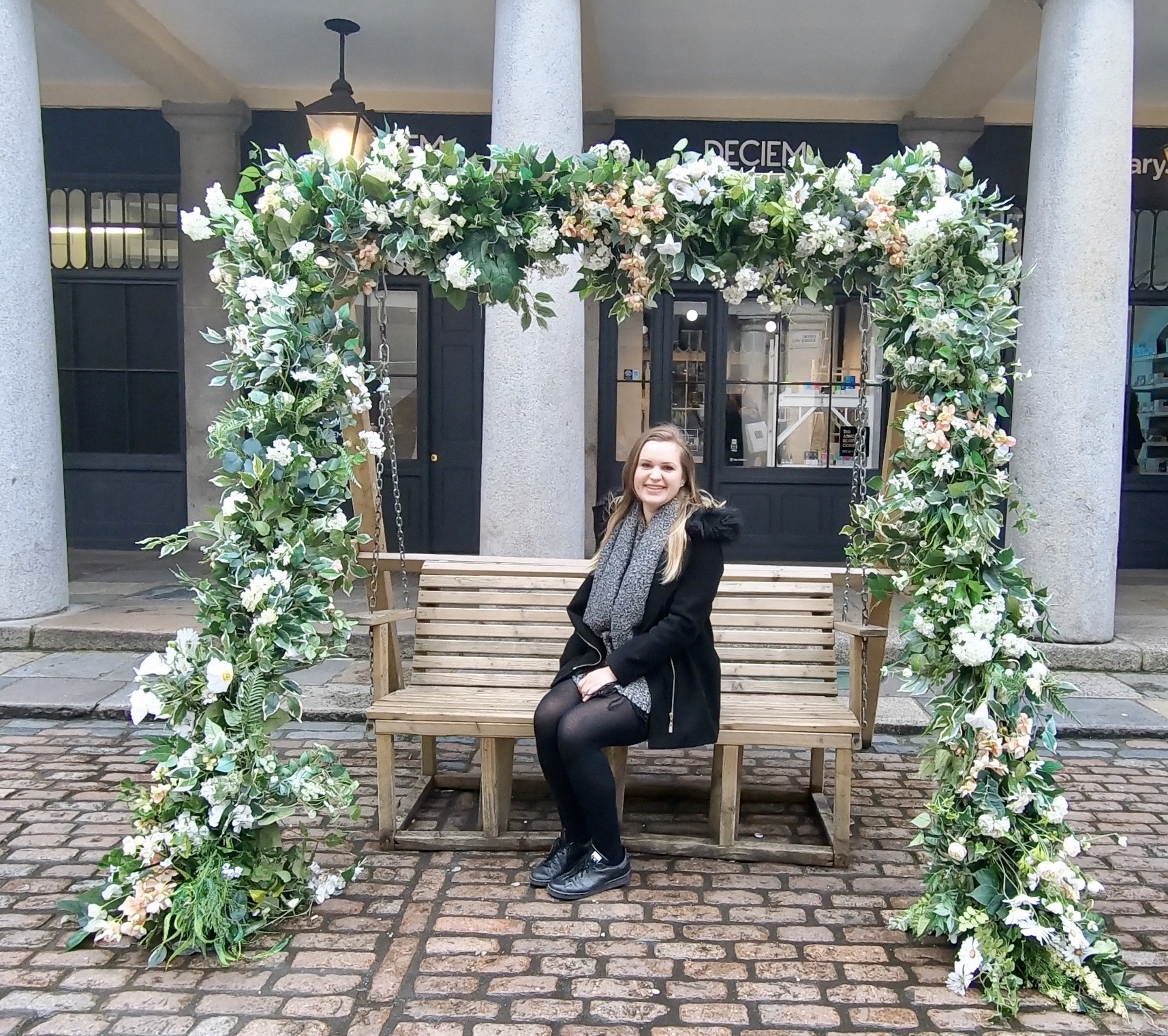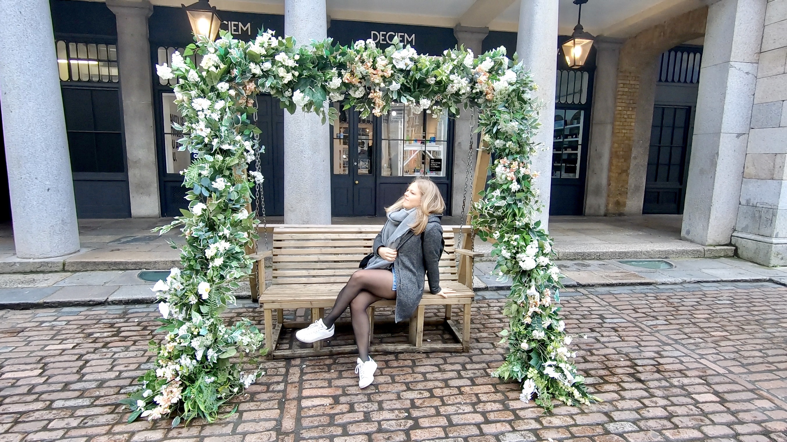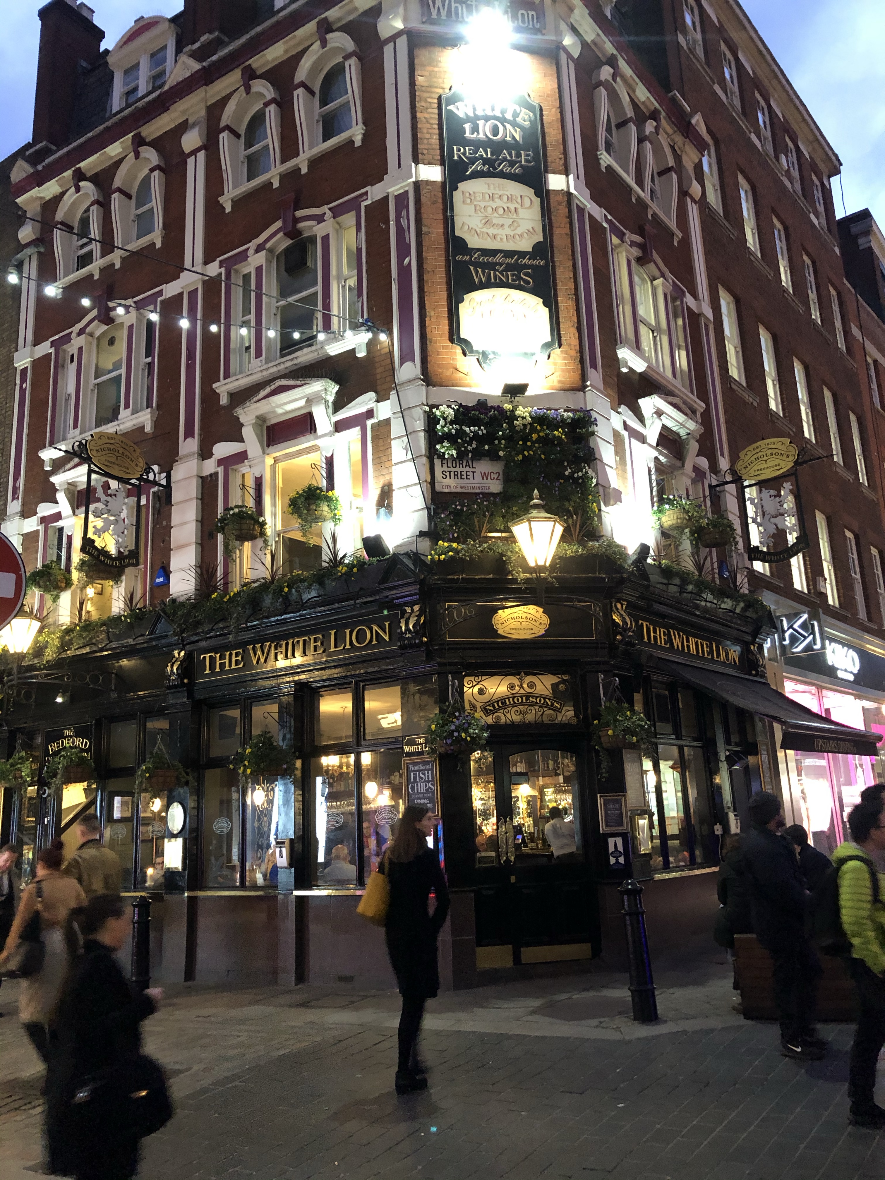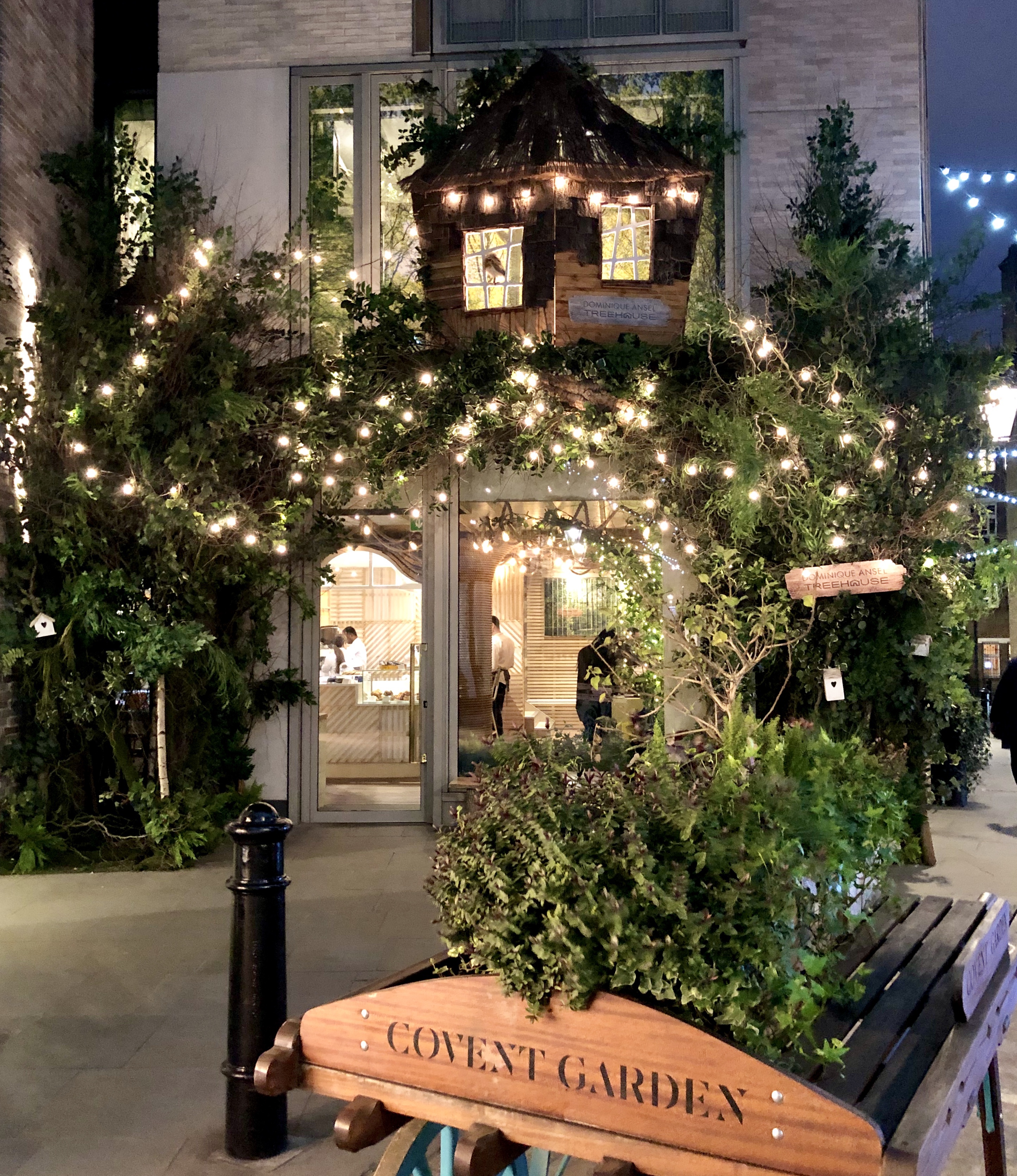 Arrivée à Covent Garden, je retombe sous le charme, il y a à nouveau un chanteur d’opéra et un autre vieil homme qui joue de l’harmonica sur la place à l’avant. Je me rends ensuite dans une ruelle avec des guirlandes lumineuses et j’arrive devant une cours qui attire mon attention… j’arrive dans le lieu le plus magnifique de ce quartier. Coup de cœur. Une petite place avec un banc, des arbustes, des fleurs, des petites tables, des guirlandes lumineuses, des lanternes avec des bougies. L’ambiance est paisible, zen, romantique, tamisée. J’adore. Je m’assieds sur le banc et j’admire.