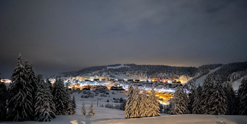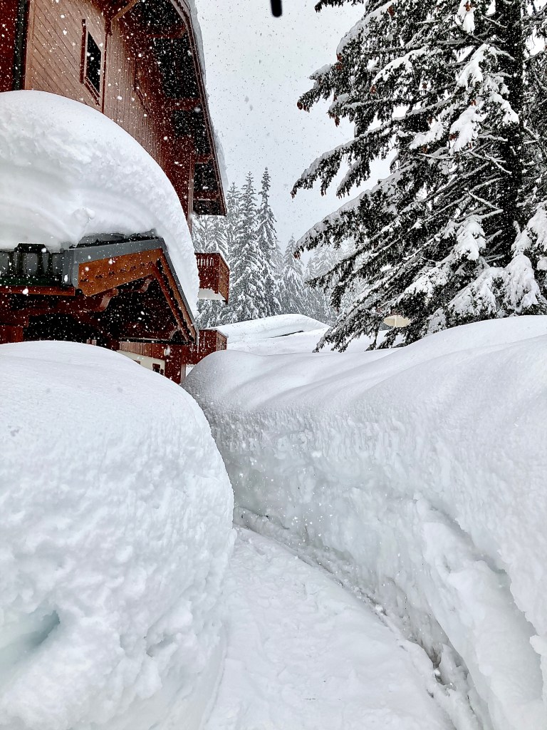 Nous sommes repartis le lundi matin pour la suite du séjour. 2h de route plus tard, nous sommes arrivés dans la station des Saisies. Accueillis sous la neige, tout est devenu blanc très vite et c’était magnifique. La quantité de neige était impressionnante.