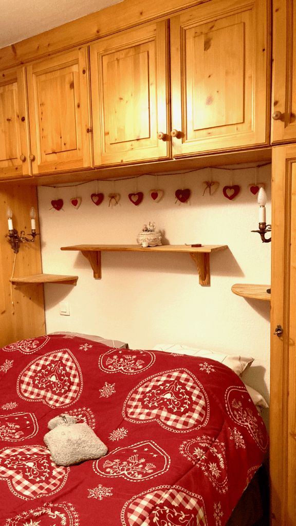 L’appartement se trouvait dans un grand chalet de plusieurs appartements à l’ambiance montagnarde. Du bois, des petits cœurs rouges, une vue sur les sapins enneigés… C’était tout mignon et chaleureux. Sans oublier la petite bouillotte 😀