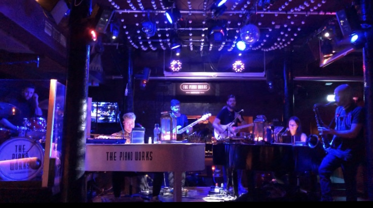 On se rend ensuite vers « The piano works » un bar dont les musiciens/chanteurs interprètent tous les titres demandés par les clients. L’ambiance est géniale, les artistes sont vraiment talentueux et les cocktails délicieux.. Le chanteur annonce à son équipe à la fin de chaque chanson la suivante, et les musiciens se mettent en route. C’est fascinant cette capacité à connaître tous les morceaux.
