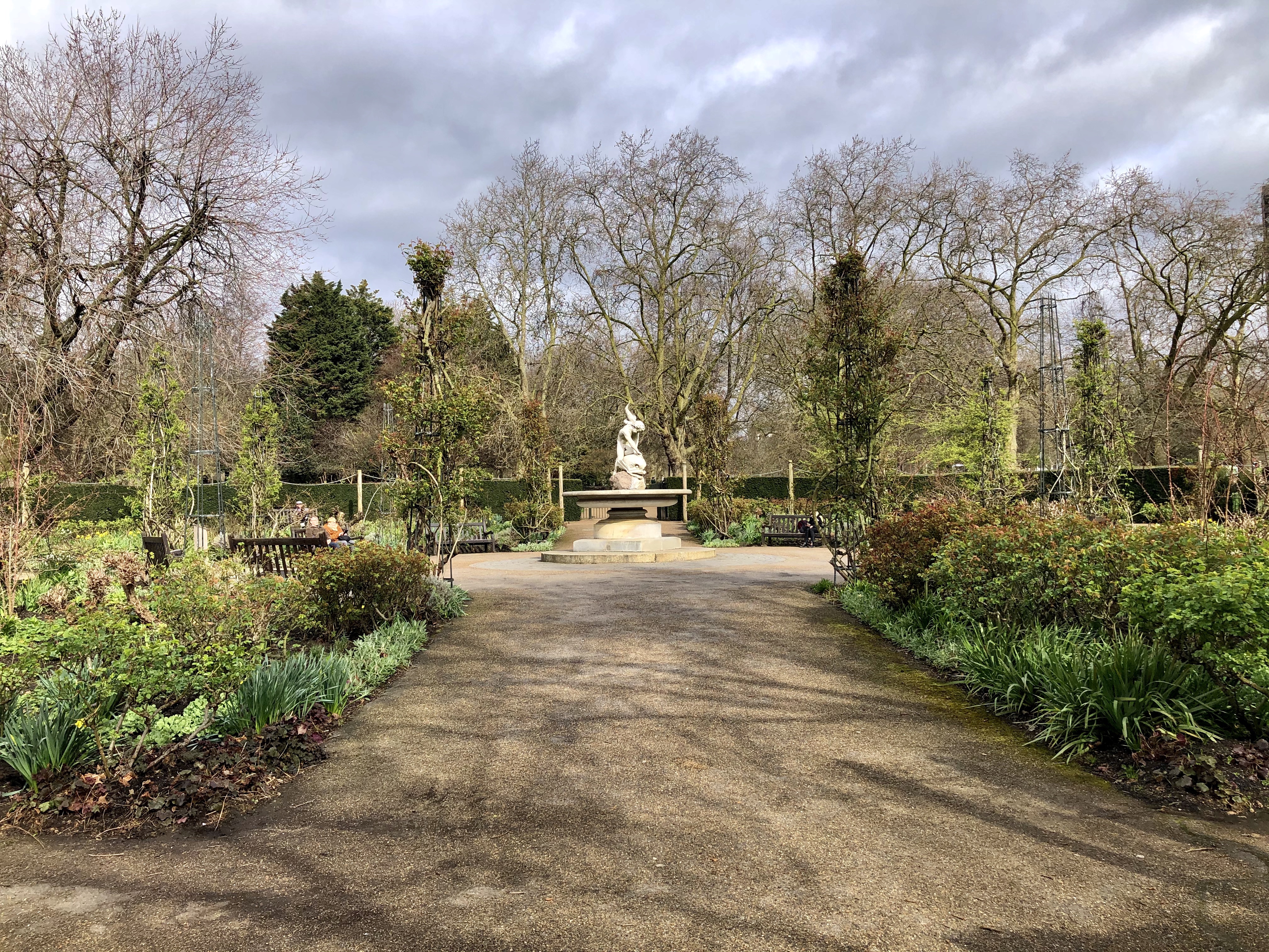 Nous nous sommes ensuite promenées au Hyde Park. J’avais lu que c’était le plus beau parc de Londres, et effectivement il est magnifique, je m’émerveille devant toutes les jolies petites places, dommage que la plupart des arbres ne soient pas encore en fleurs et qu’il fasse encore froid.
