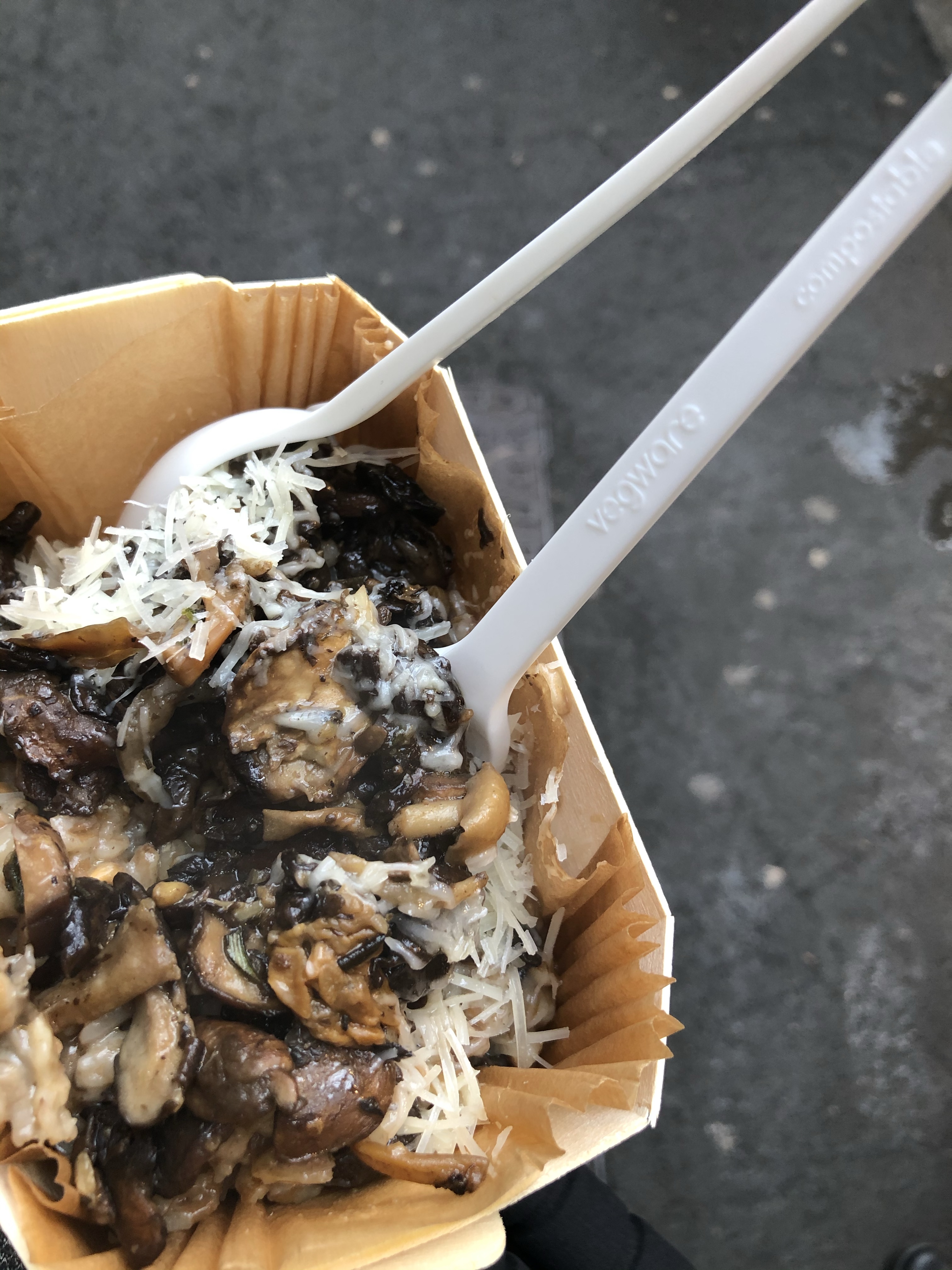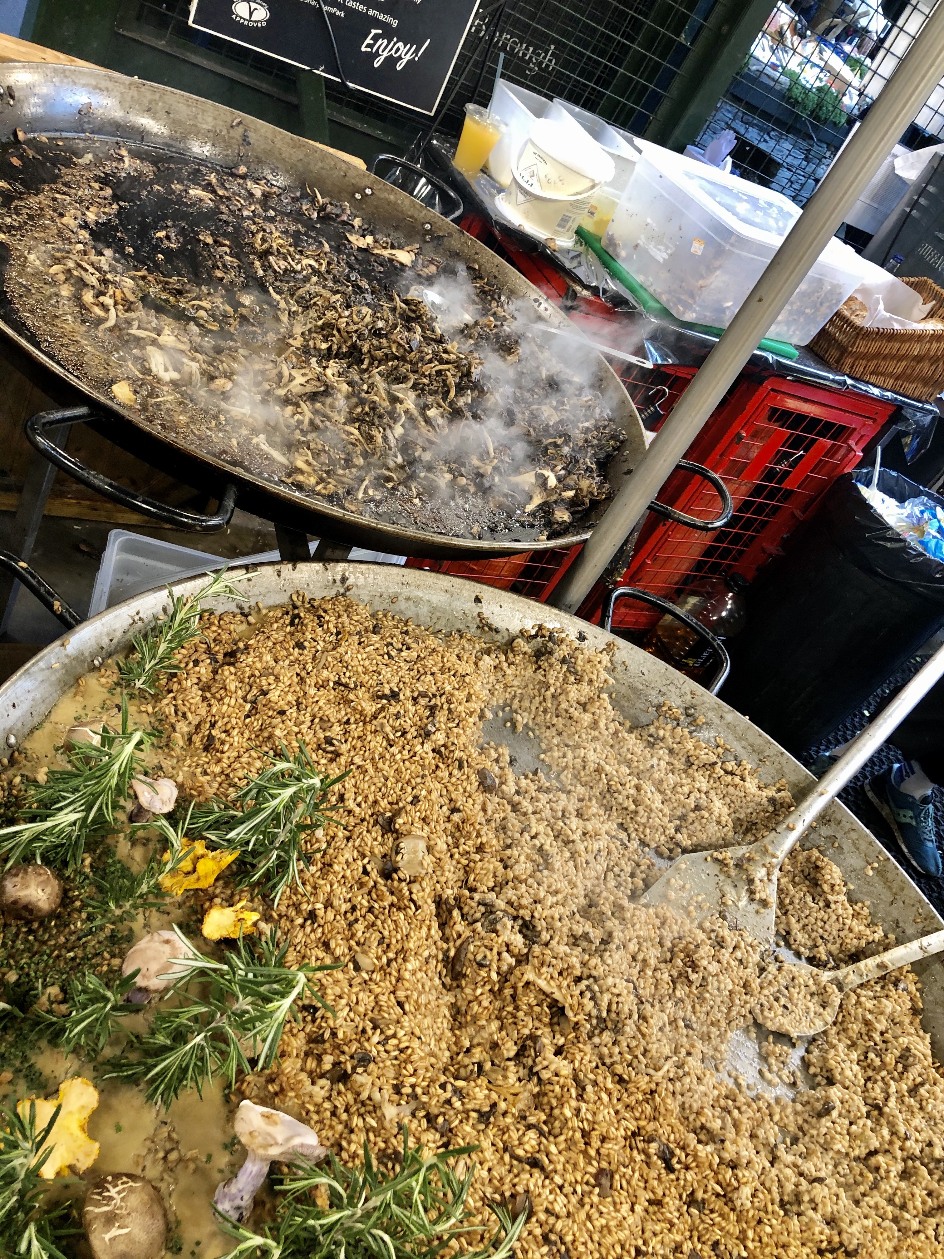 On arrive au Tate Modern mais il est déjà presque 16h et Borough Market ferme à 17h, Comme on voulait y manger (notre repas de midi) et que c’était un peu plus loin sur la trajectoire, on est donc allées au Borough Market, endroit très sympa. En tant qu’amoureuse de Streetfood je ne peux qu’aimer. Mais comme d’habitude il y a tellement de choix que c’est frustrant, j’aimerai tout goûter. J’opte pour un risotto à l’épeautre et aux champignons. Je demande d’abord confirmation au vendeur que c’est bien de l’épeautre et il me répond que oui, que je suis la première personne qui trouve. Je lui dit que c’est super de faire ça parce que c’est beaucoup mieux nutritionnellement parlant; il me dit « Exactement ! c’est ce que j’essaye d’expliquer aux gens » (salut copain)