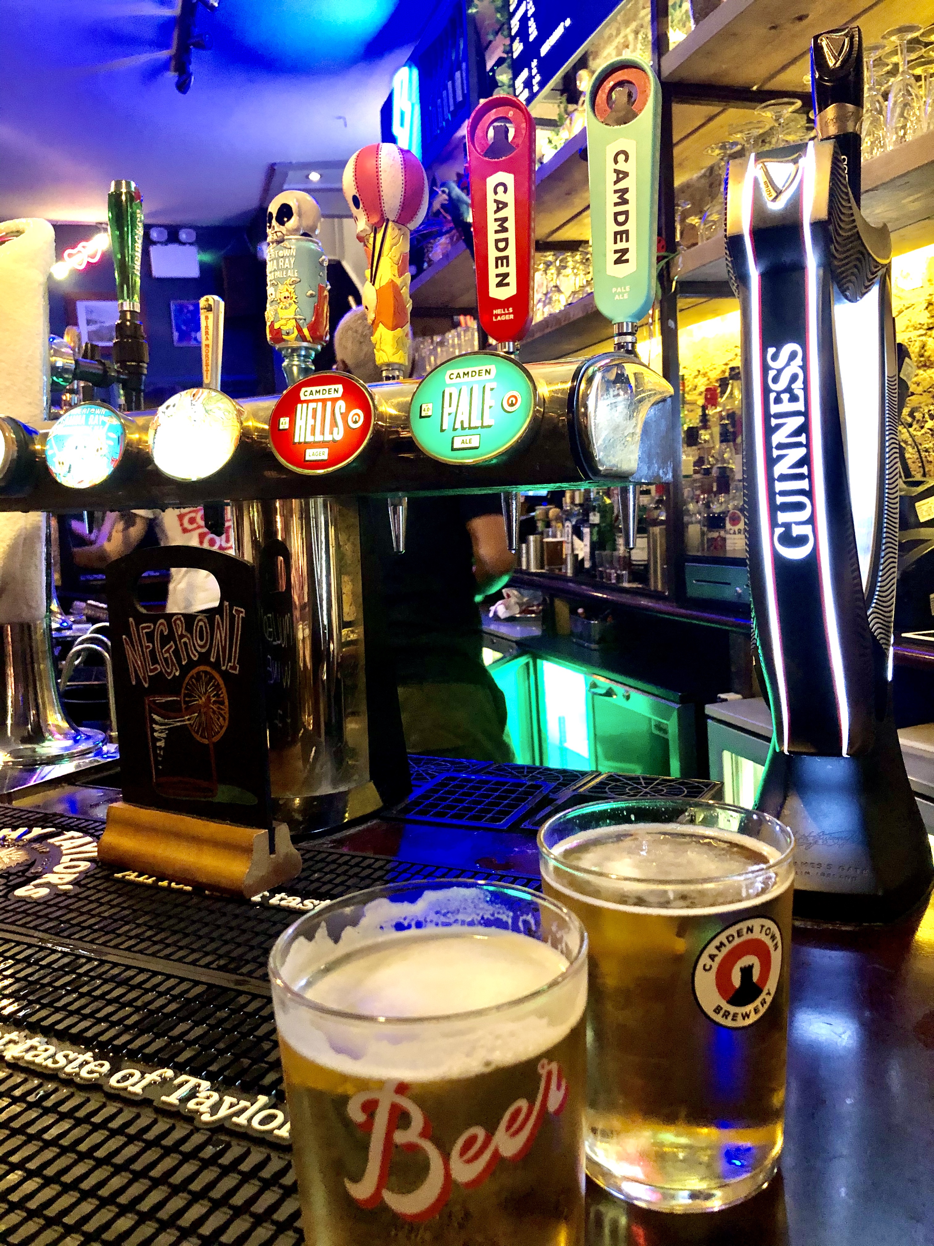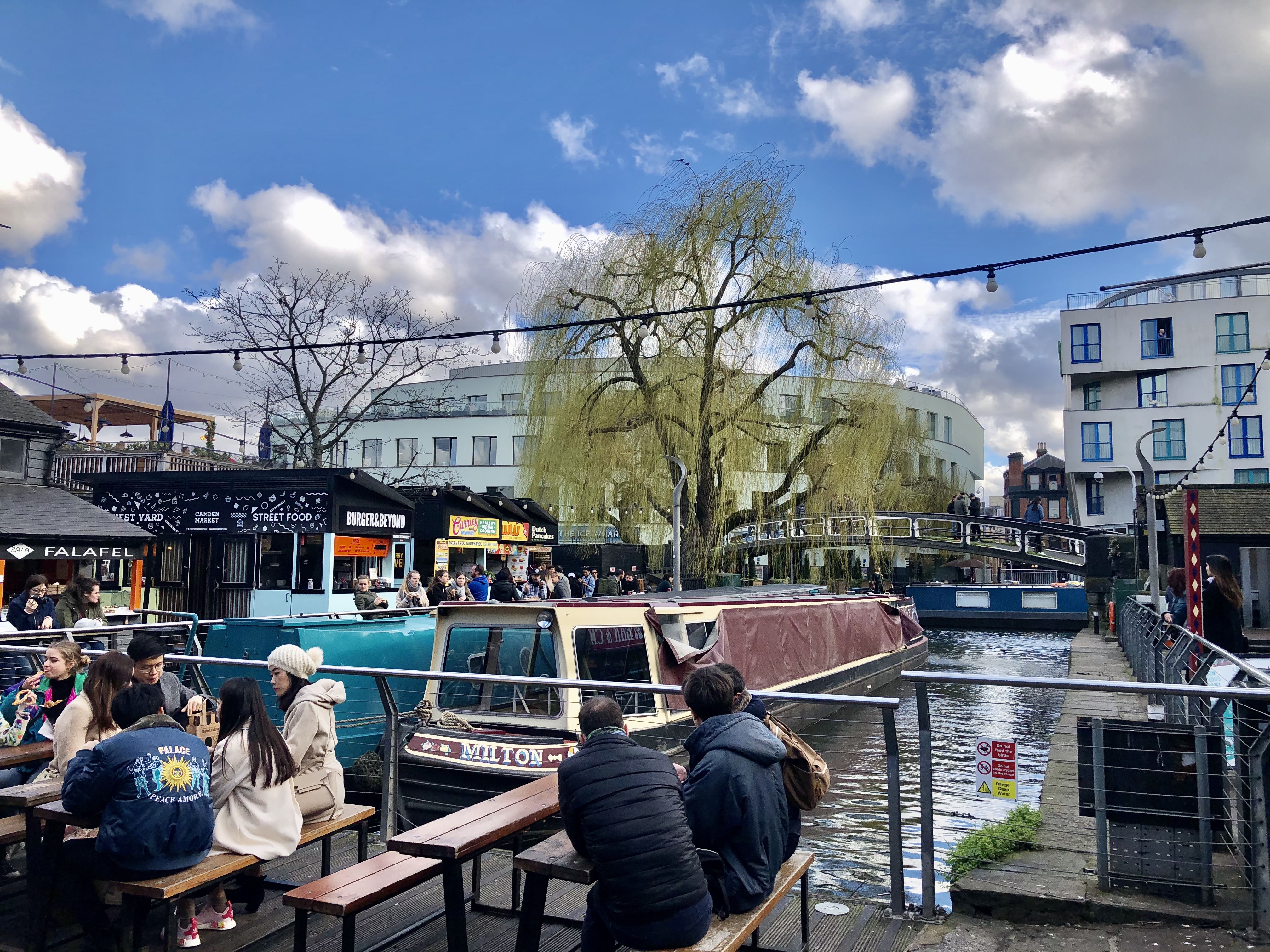 On se dirige ensuite vers Camden Market, nouveau changement d’ambiance. Premier arrêt chez Poppies qui est bien réputé pour partager un fish and chips à deux avant de se rendre au marché de Streetfood. Il y a à nouveau trop de choix, trop de choses interessantes à gôuter.. Mais j’avais repéré dans un reportage d’Echappées Belles sur Londres qu’un français y faisait des burgers au bœuf bourguignon. J’avais trop envie de tester ça. On trouve le stand et effectivement c’est un vrai délice… le bœuf bourguignon est mijoté puis effiloché pour en faire un steak, une tranche de fromage à raclette se laisse également fondre sur la plaque pendant que le pain se fait toaster. La vendeuse arrose le steak de la sauce bourguignon et elle assemble le tout. On se partage le burger à deux pour se garder de la place pour autre chose mais c’était tellement bon, savoureux, juteux! Ça se passe au stand « The Patate – French Burger »