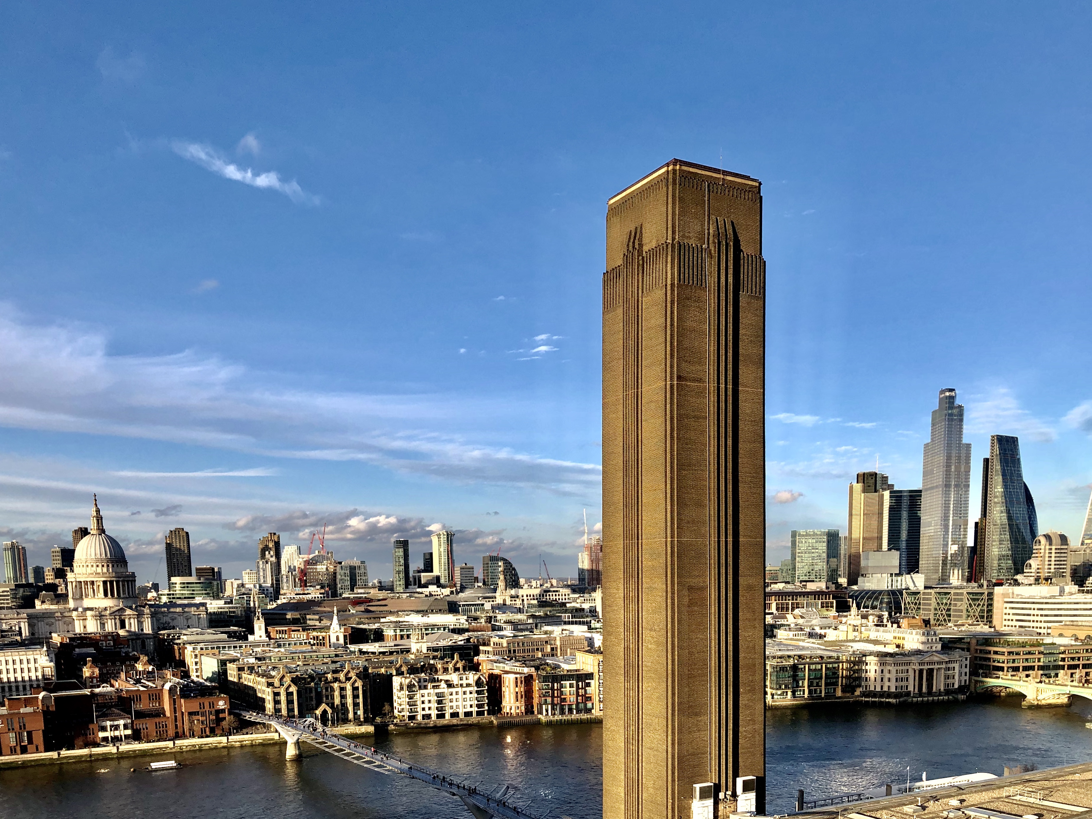 Je prend la direction du Tate Modern et marche le long de la Tamise pour aller au musée. J’adore l’ambiance, il y a des artistes musicaux, le soleil est en train de se coucher, il y a des coureurs, des gens qui se baladent, la température est agréable.. Beau moment. Le Musée est super grand. Il y a de belles œuvres mais je n’ai pas l’habitude de passer beaucoup de temps dans les musées, je voulais surtout voir la vue qu’offrait le dernier étage, et effectivement c’est super beau d’autant plus que le soleil est en train de se coucher.