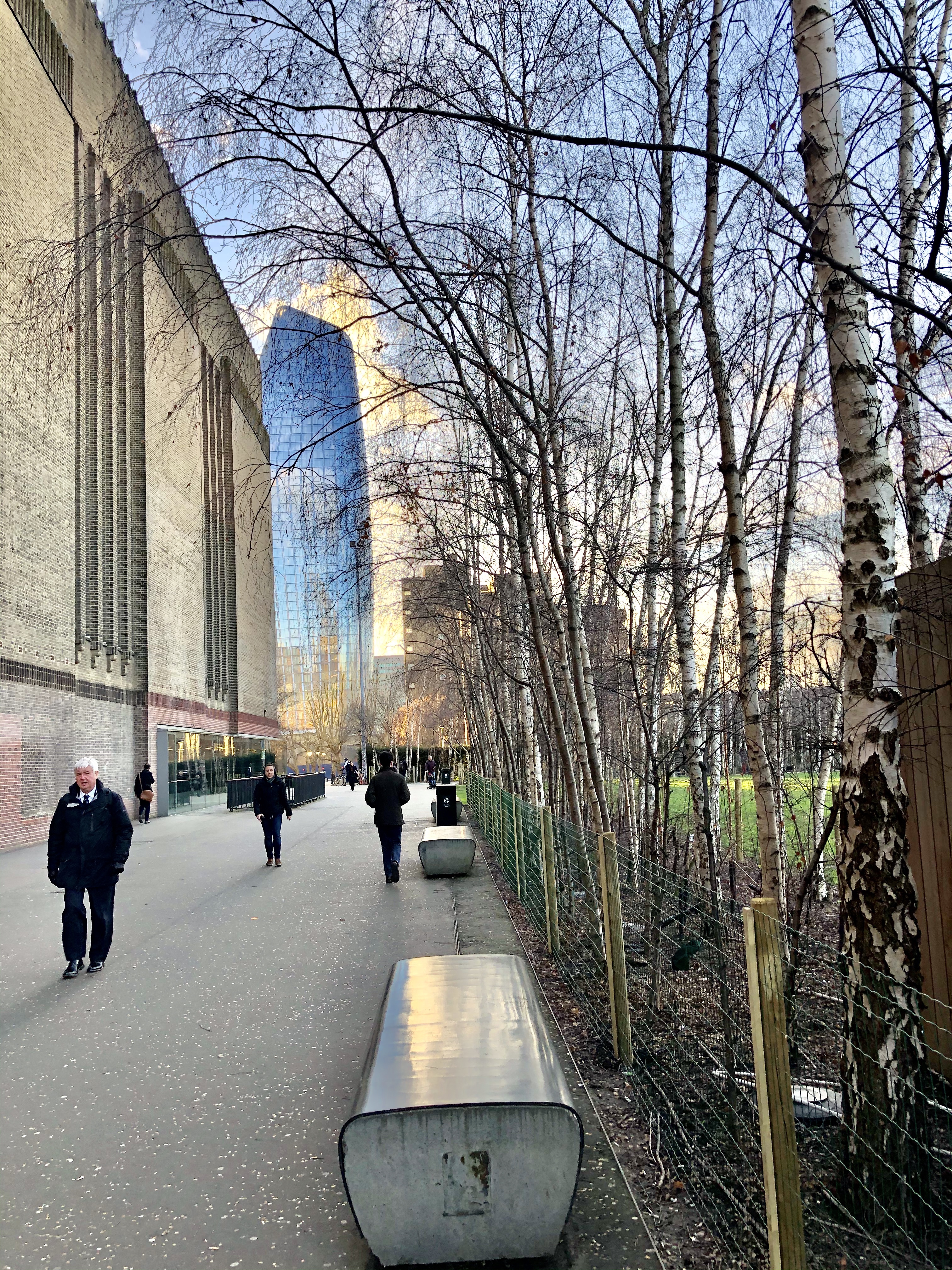On souhaite ensuite se rendre au Tate Modern avec le ferry mais nous n’avons plus assez d’unités sur notre Oystercard et n’arrivons pas à la charger. On décide donc de longer la Tamise à pied et c’est top. Un superbe chanteur joue avec une basse, très belle voix. Nous restons au moins 15 min. Je lui ai donné une pièce et je lui ai dit qu’il a une très belle voix. Il ne faut jamais hésiter à dire aux gens qu’on apprécie ce qu’ils font.