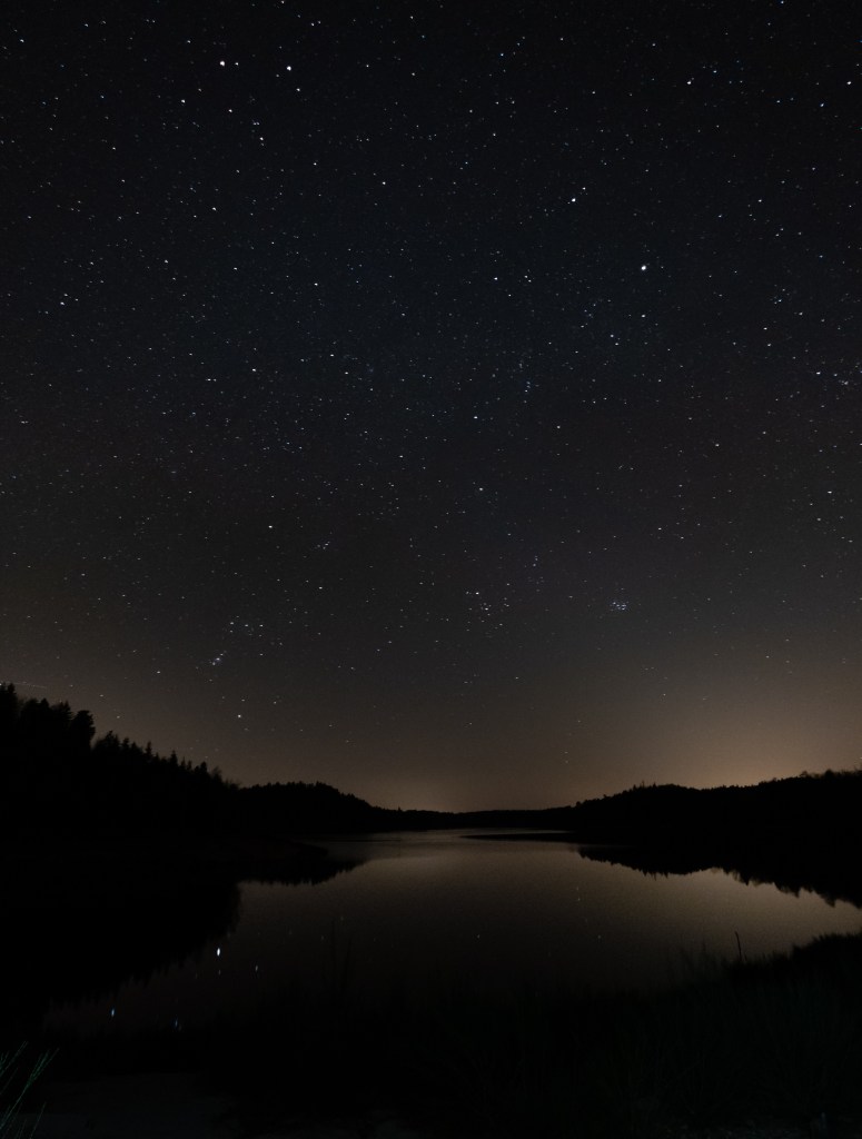 En face de nous, le ciel est remplis d’étoiles qui reflètent dans le lac et nous apercevons la Grande Ourse. Mais il fait vraiment froid pour se prendre le temps à contempler le ciel, il est donc temps d’aller dans la tente dans les sacs de couchage.