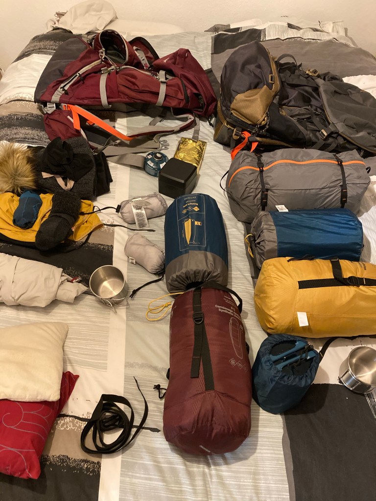 Si quelqu’un s’y connait en équipement, je suis volontiers preneuse de conseils : Sac de couchage, matelas gonflable isolant et compact qui ne prend pas de place dans le sac lorsqu’il est dégonflé, tente pratique…