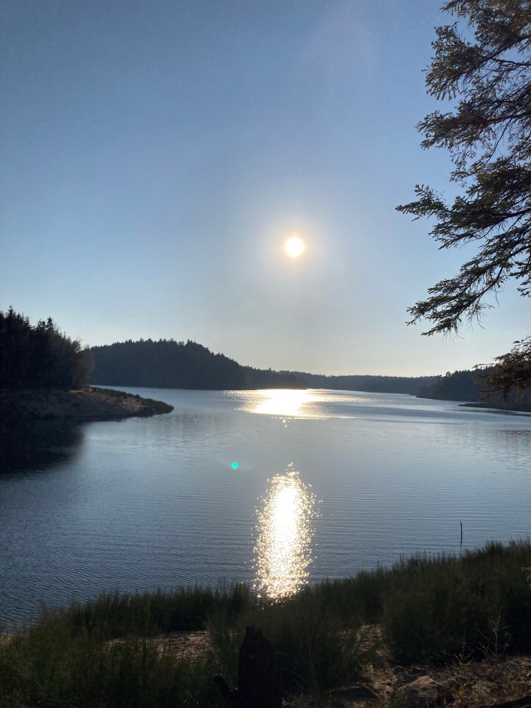 On a donc jeté notre dévolu sur le Lac de Pierre-Percée, 380m d’altitude. Par rapport aux 1000m d’autres endroits que nous avions repérés, ça devrait le faire. De plus j’adore les paysages aquatiques, être face à un lac, au calme de l’eau, c’est tellement apaisant. Avec ses 32 km de pourtour, ce lac offre de nombreux endroits sympas.