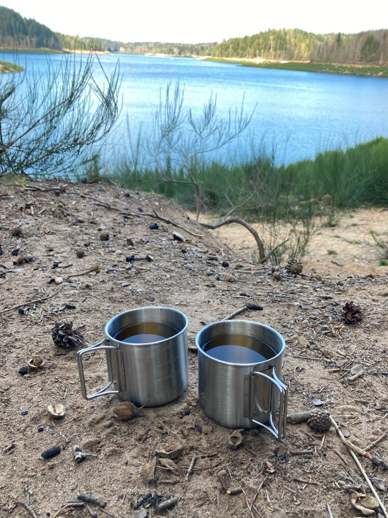 5l d’eau (pour boire, se brosser les dents, faire à manger, se laver) Nous avons emportés avec nous 3 bouteilles en plastique de 1,5l et nos deux gourdes en Inox, pas le top niveau poids, la prochaine étape sera de trouver un système pour filtrer l’eau pour économiser cette charge)