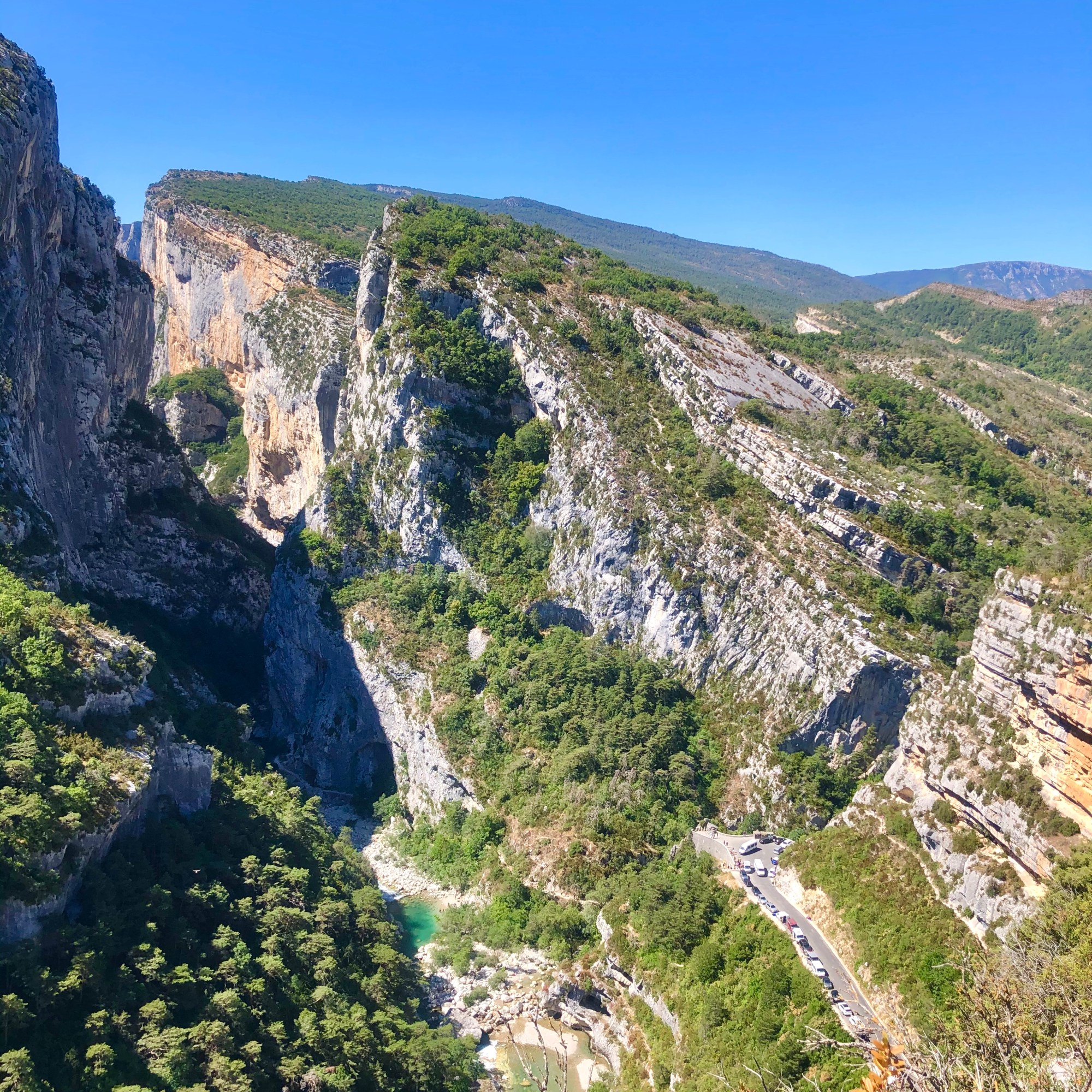 Du coup, on se retrouve sur un parking juste un peu plus haut. Tampis pour la vue. On est quand même bien placés pour se balader le lendemain.